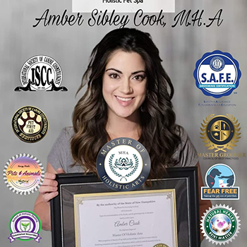 Amber Cook, M.H.A, H.H.P Meet Amber: Amber is the Owner/Founder and Lead Holistic Groomer of Pippy’s Puppy Parlor. She began her journey in grooming and Holistic pet care after walking away from a career in Medicine where she specialized in Cardiology and Trauma with a minor in Psychology. Amber enjoys pursuing continuing education and staying up to date on salon safety, grooming, and holistic techniques. She holds her Masters of Holistic Arts/Sciences (specializing in Pets) and CMCA (Certified Master Canine AEsthetician) PDS (Pet DermaTech Specialist) with the ISCC (International Society of Canine Cosmetologists), and her Doctor of Naturopathic Medicine Advanced Diploma. Amber is a certified Reiki Master specializing in Pets/animals, a Member of the ISCC, APPGA (American Professional Pet Groomers Association), IJA (International judges Association), and AKC S.A.F.E Groomer certified in safe grooming and salon sanitation. Amber grooms all pets, and specializes in Geriatric, Special Needs, and Behaviorally challenged pets. She connects with her clients and their pet parents in a professional and personal level.